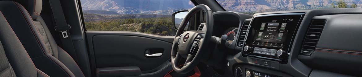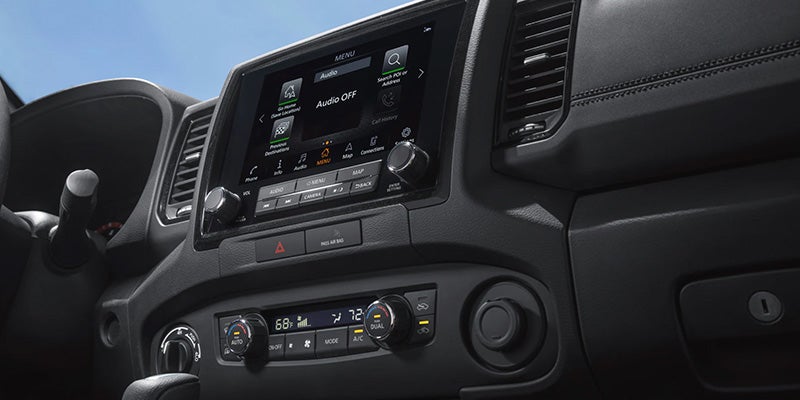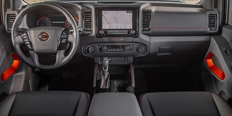 The updated interior of the 2022 Frontier is evident, you'll notice that Nissan put a lot of thought into making the interior design details comfortable and convenient for both drivers and passengers. The S has cloth upholstery, a push-button start, a tilt steering wheel, a six-speaker sound system, and an 8-inch touch screen with Android Auto and Apple CarPlay smartphone integration.